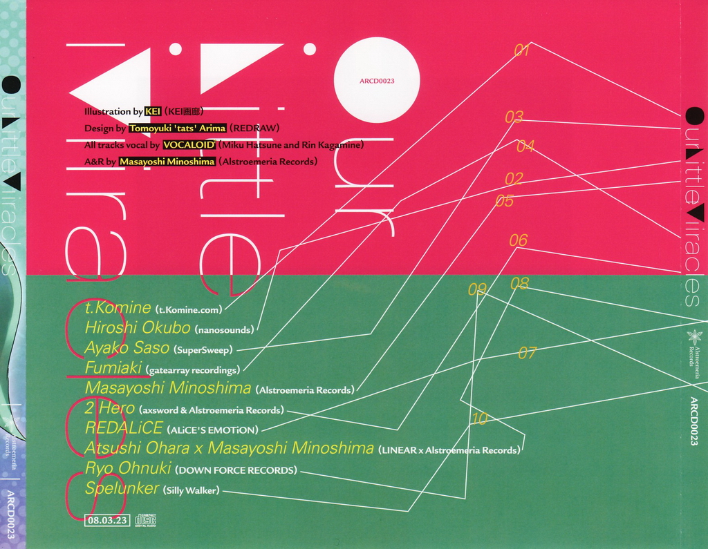 | - | 10. Colour me techno pop.flac | 31683139 | | Our Little Miracles | 10 | Miku | Colour me techno pop | 150 | 7B | 266 | 928 | 949 | | flac | | | flac | 2022-08-13 20:43:00 |